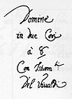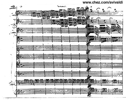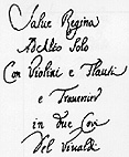 The "Judith triumphans devicta Holofernes barbarie" from 1716, which is above all concerning the quite heavy orchestra required for its performence. The drums at the beginning (second line from the bottom) merges later twith trumpets (top line), then oboes (2nd top line) before the all strings orchestra take over (3rd and 4th lines and the last bottom one, thta of the continuo). Simple but efficient, all it needs was to write it down. On the left, the booklet that was given for the audience at the Chiesà della Pietà in 1716 (wasn't there, sad !!).